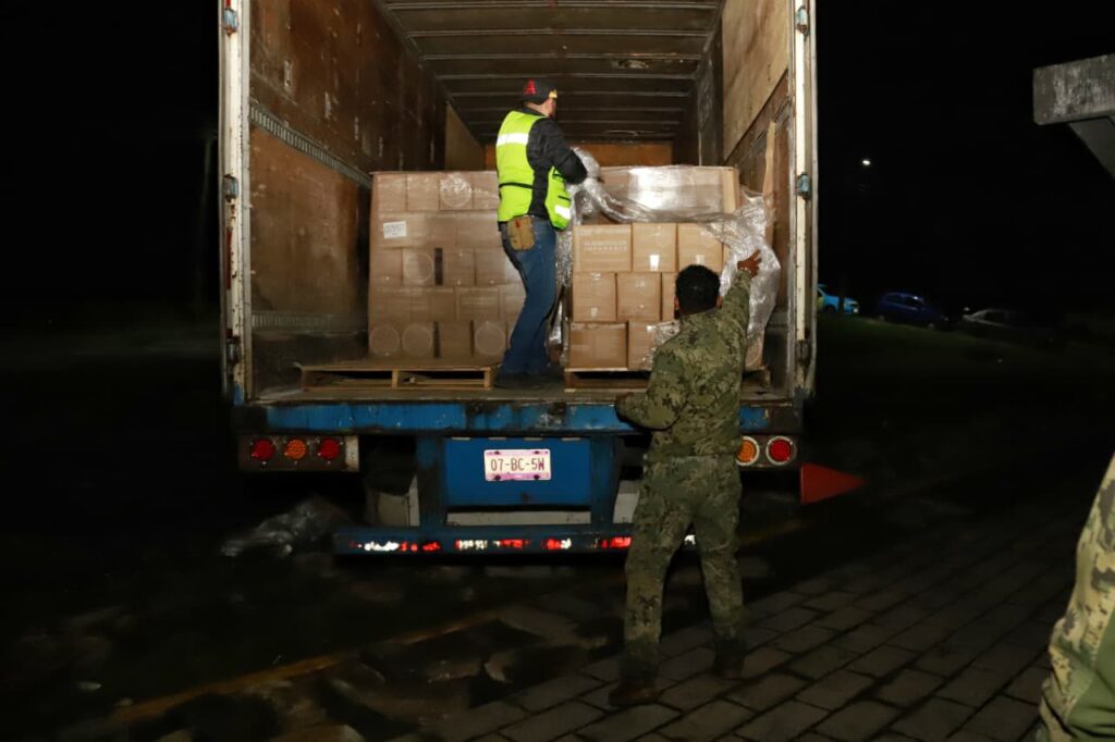 El apoyo fue canalizado a través del DIF Puebla Capital, que preside MariElise Budib, y llegó durante la madrugada de este sábado al recinto ferial del municipio, donde habitantes y personal local colaboraron en la descarga y organización de los paquetes alimentarios.