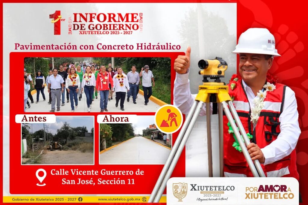 En infraestructura, el edil destacó la construcción de pavimento hidráulico en la calle Vicente Guerrero de San José, sección 11, con más de 900 metros lineales, así como la rehabilitación de la calle Cuauhtémoc, en la cabecera municipal, obras que mejoran la movilidad y el entorno urbano.