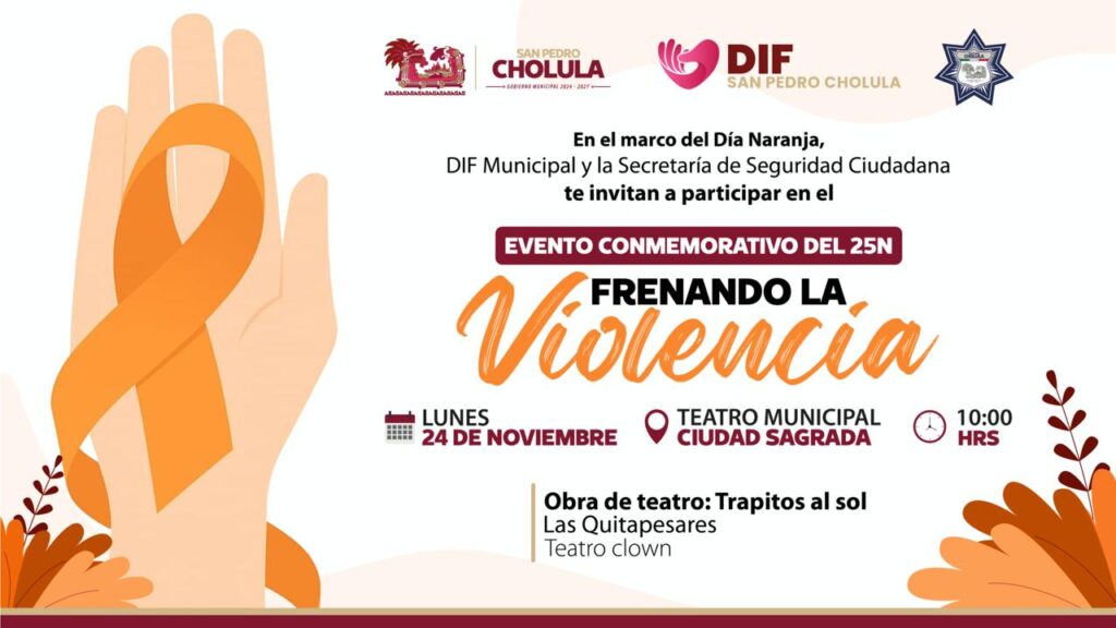 En el marco del Día Internacional para la Eliminación de la Violencia contra las Mujeres y las Niñas, el Gobierno de San Pedro Cholula anunció una serie de actividades conmemorativas bajo el nombre “Frenando la violencia”, con el objetivo de promover la igualdad, la reflexión y la participación ciudadana.