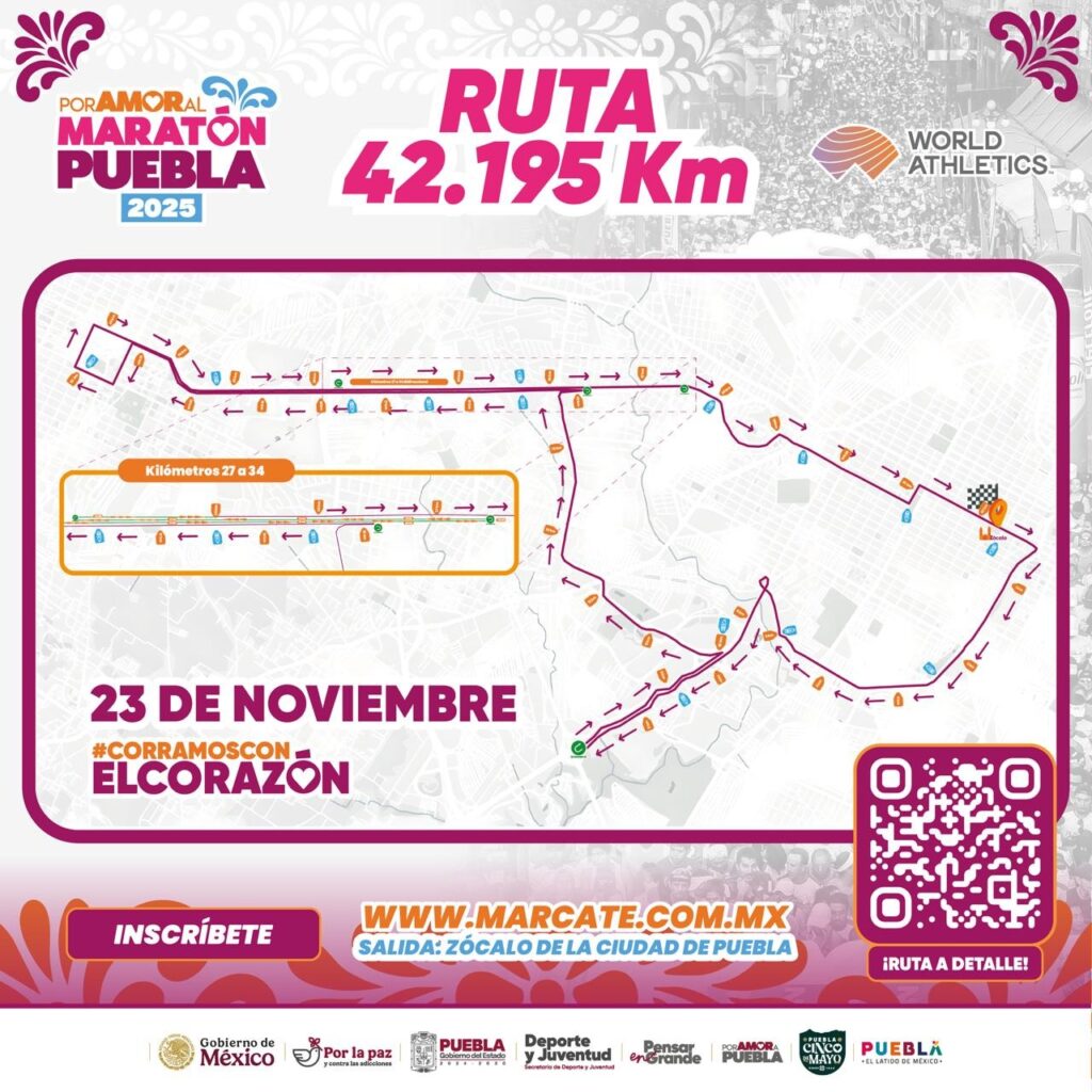 El Maratón de Puebla 2025 reunirá a más de 20 mil corredores este 23 de noviembre y provocará cierres viales desde las 04:00 horas.