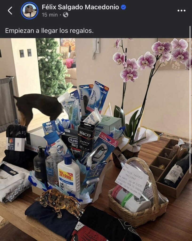 Salgado Macedonio borra publicación tras polémica por regalos de cumpleaños