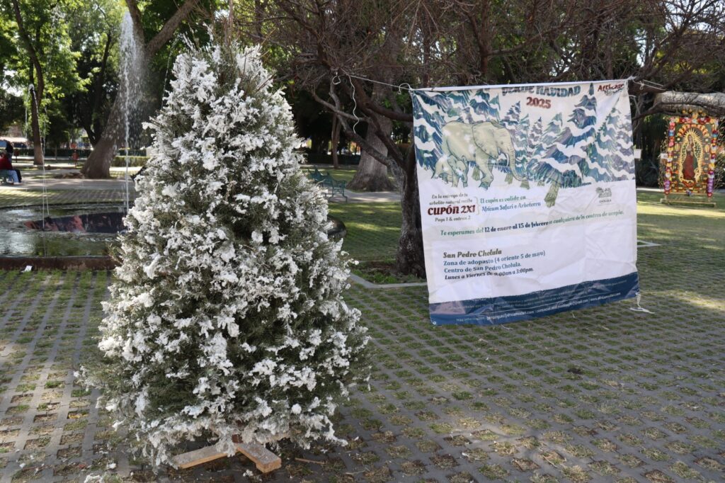 La iniciativa permite que las y los ciudadanos entreguen sus árboles navideños naturales en la zona del adopasto, ubicada frente al Museo Casa del Caballero Águila, a cambio de un pase 2×1 para ingresar a Africam Safari o Arboterra, como incentivo para evitar su desecho en la basura.