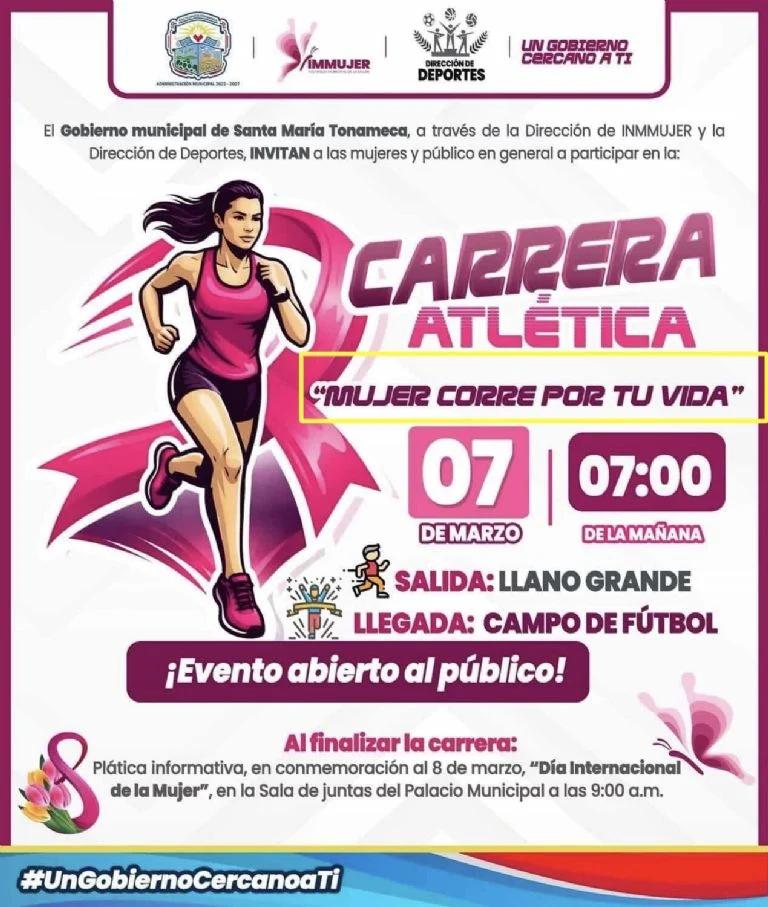 El primer caso ocurrió en Santa María Tonameca, donde el ayuntamiento encabezado por César Ruíz Gutiérrez tituló una actividad deportiva como la carrera “Mujer, corre por tu vida”. La frase fue recibida con rechazo inmediato en redes sociales, pues en un contexto donde 10 mujeres son asesinadas al día en México, el nombre de la competencia fue interpretado como una alusión literal y cruel a la violencia que sufren las mujeres al intentar salvar sus vidas. Aunque inicialmente el gobierno municipal intentó justificar el título como una forma de “reafirmar el compromiso” con el bienestar, finalmente emitieron una disculpa aceptando que se trató de un error.